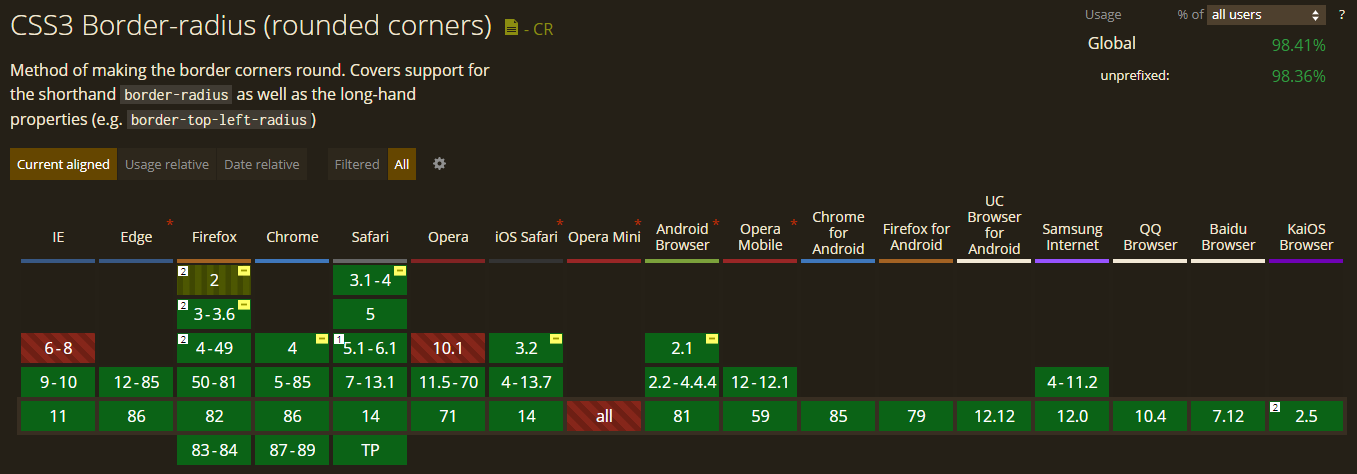 border-radius는 대부분의 브라우저에서 작동하지만, IE8 이하에서는 작동하지 않습니다.