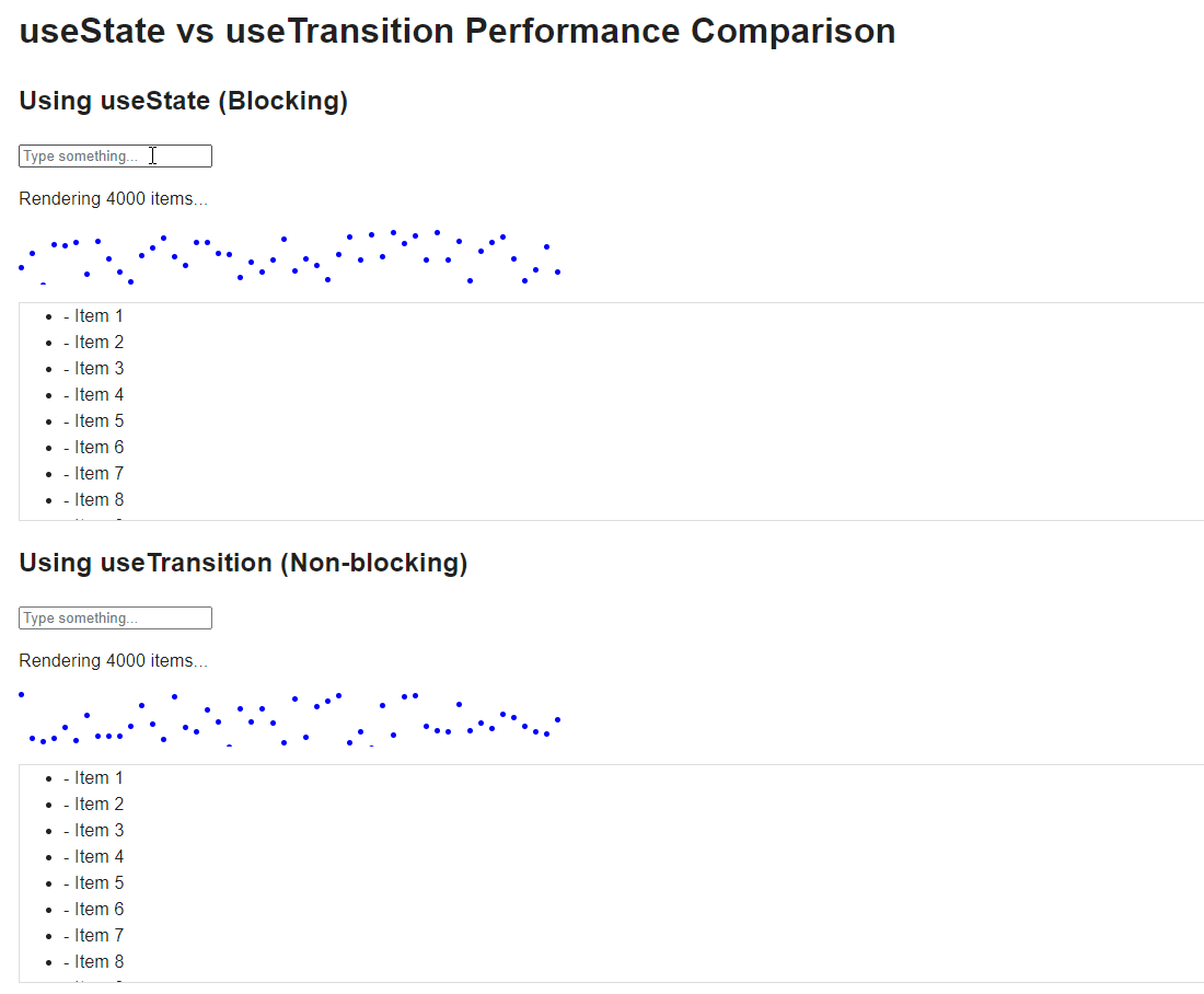 <h1>useState vs useTransition Performance Comparison</h1>