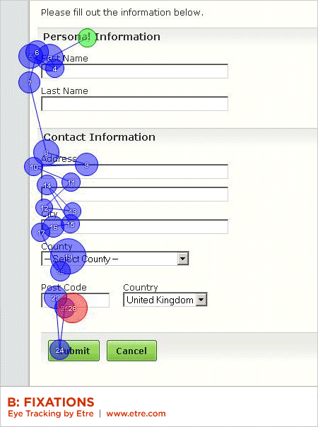 읽기 방향 에드먼드 C. 아놀드의 구텐베르크 다이어그램 대부분의 사용자는 왼쪽에서 오른쪽으로 텍스트를 읽습니다. 따라서 시선이 자연스럽게 오른쪽으로 이동하면서 버튼을 인식하는 흐름이 형성됩니다. 이런 이유로 버튼을 오른쪽에 배치하는 것이 사용자 경험을 향상하는 요소로 작용할 수 있습니다.